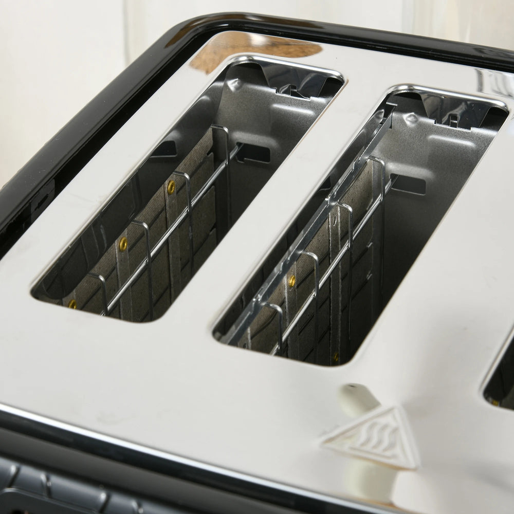 - Polished honeycomb design: A sleek, stylish black four slice toaster - a great addition to your kitchen.