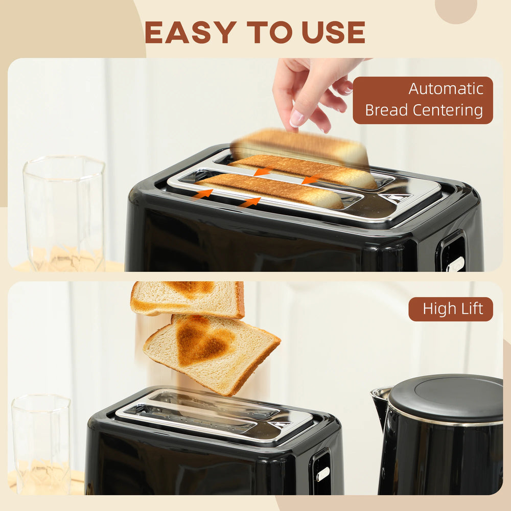HOMCOM Polished Stainless Steel Kettle and Toaster Set - Black
