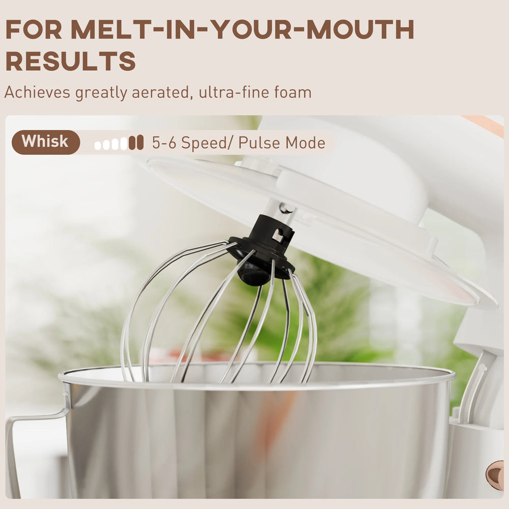 HOMCOM 1300W Kitchen Stand Mixer, with Accessories - White