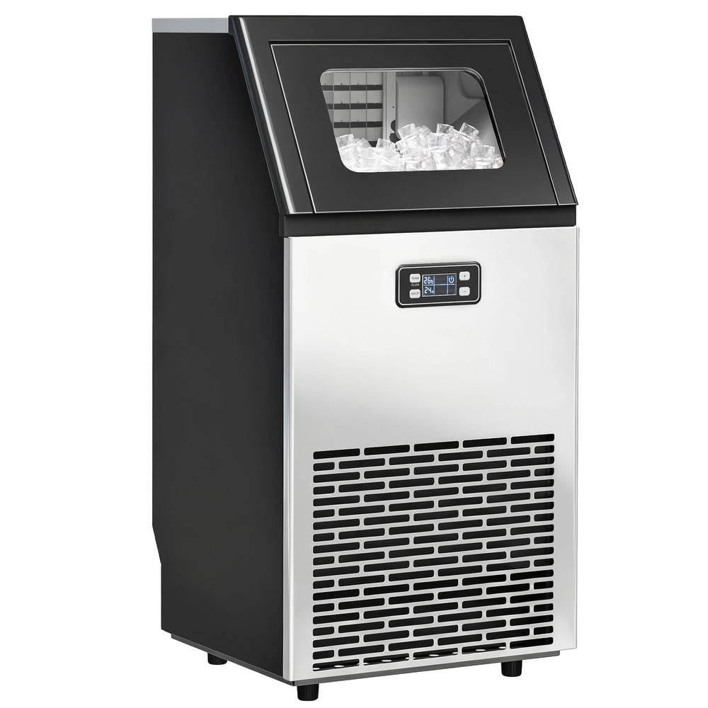 Tired of mid-party ice runs? Keep drinks chilled and guests happy with the HOMCOM ice cube maker, producing up to 45 kg daily. Its smart LCD shows the countdown, while easy controls let you adjust cube size. Watch ice form through the transparent window, enjoy quiet operationand rely on automatic self-cleaning. Sleek design fits homes, pubs, bars, offices, restaurants, cafs and more, making every gathering effortless and stress-free.