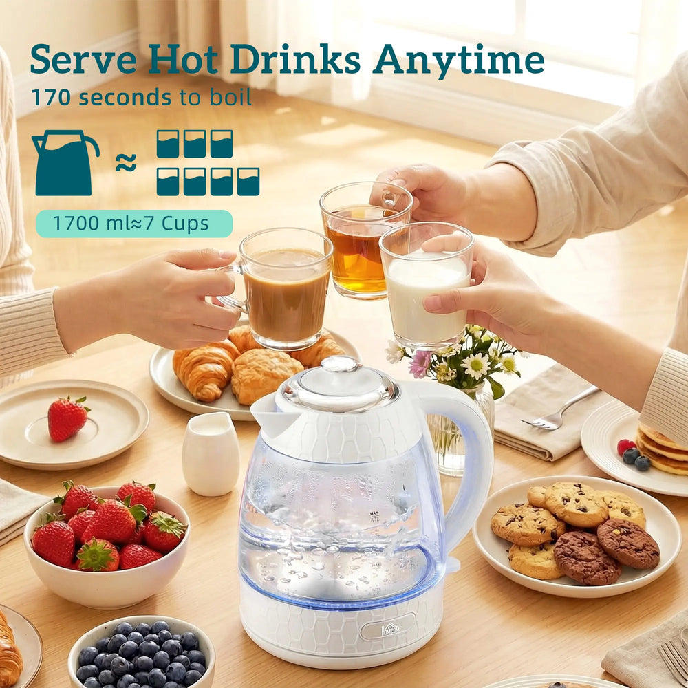 - Fast boiling you can see: This 3000W, 1.7L kettle boils water in about 170 seconds, with a clear water level indicator and blue indicator light that make it easy to monitorbringing everyday speed, convenienceand reliable performance