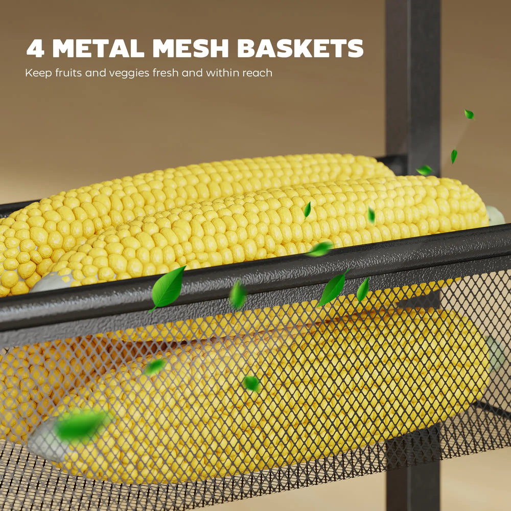 - 5-tier storage: With four mesh baskets, this kitchen trolley provides easy access and airflow for spices, snacks, cleaning supplies, or toiletries. It comes with a wood-effect top that doubles as an extra work surface for kitchen prep