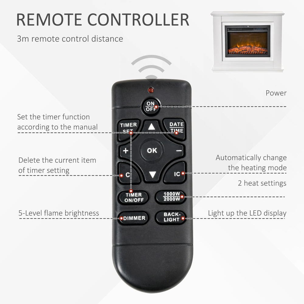 HOMCOM Electric Fireplace Suite with Remote Control, 1kW/2kW Freestanding Fireplace Heater with LED Flame Effect, Overheat Protection, 7-day Programmable Timer