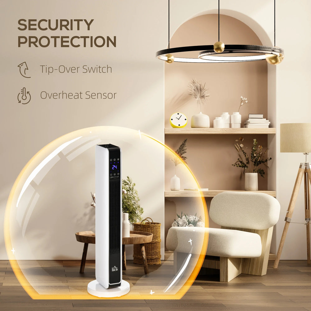 HOMCOM 1100W/2200W Space Heater with 65 Oscillation & 8-Hour Timer and Overheat & Tip Over Protection, Room Heater with 2 Heat and Fan for Bedroom, 29 inch