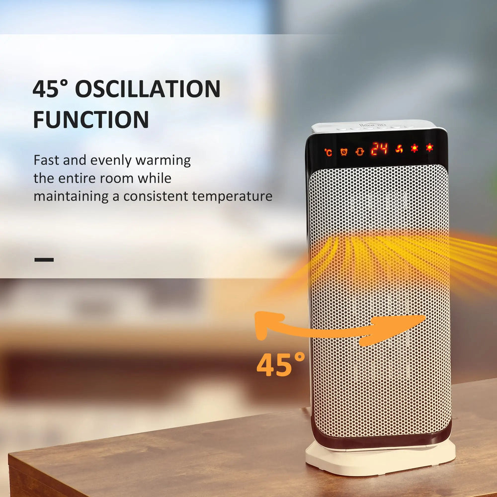 HOMCOM 2000W Electric Heater, PTC Ceramic Portable Fan Heater with Overheating & Tip-Over Protection, 8H Timer, 45 Oscillating Heater for Home, Office, Study, Bedroom