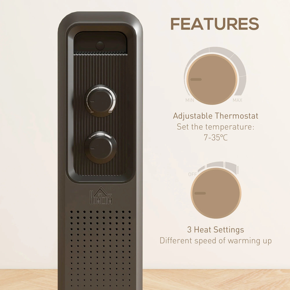 HOMCOM 2500W Oil Filled Radiator, 11 Fin, Portable Electric Heater with 3 Heat Settings, Safety Cut-Off and Wheels, Grey