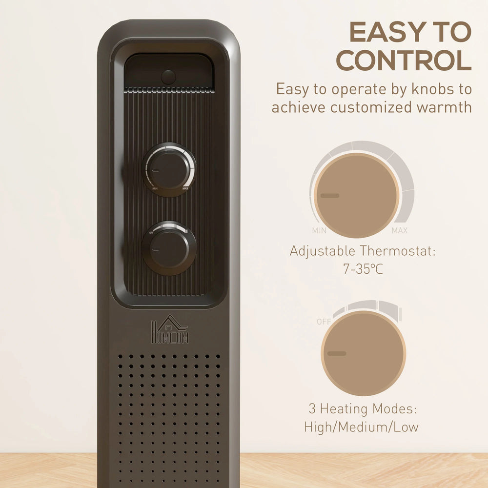HOMCOM 1500W Oil Filled Radiator, 7 Fin, Portable Electric Heater with 3 Heat Settings, Safety Cut-Off and Wheels, Grey