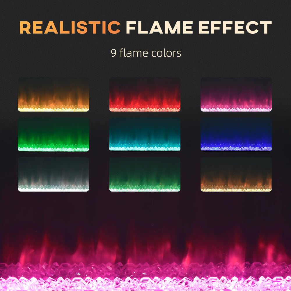 HOMCOM 102cm/40" Electric Fireplace, 2000W Recessed and Wall Mounted Electric Fire with Remote Control, 9 Flame Colour and Crystal, Black