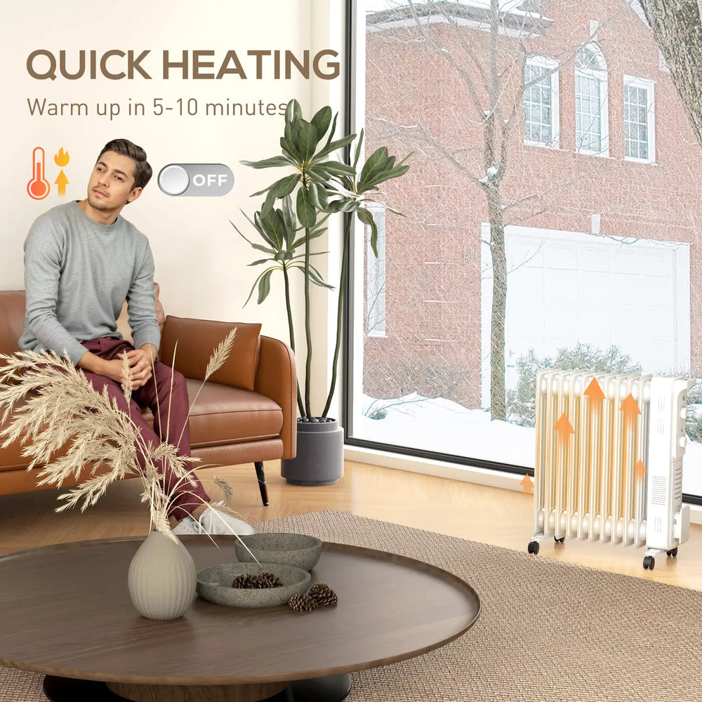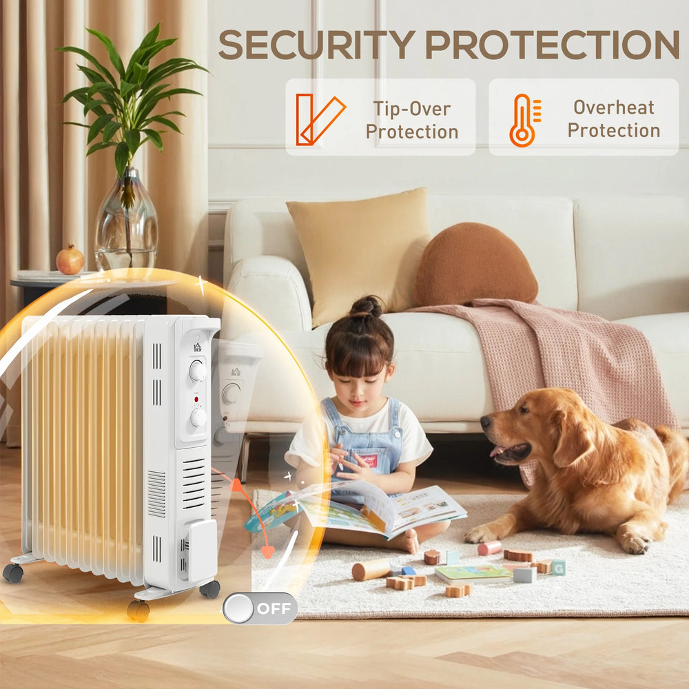 HOMCOM 2.5kW 11 Fin Oil-Filled Radiator - White
