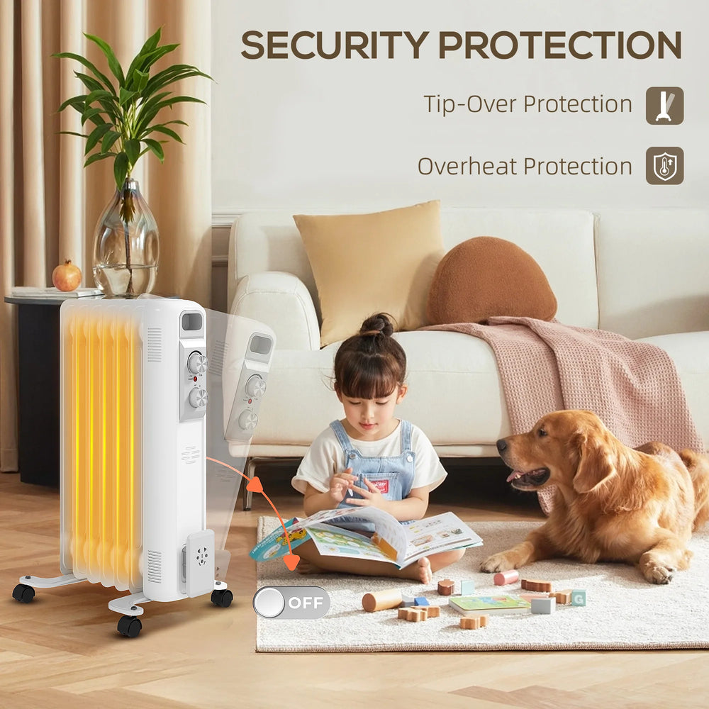 HOMCOM 1.5kW Seven Fin Oil-Filled Radiator - White