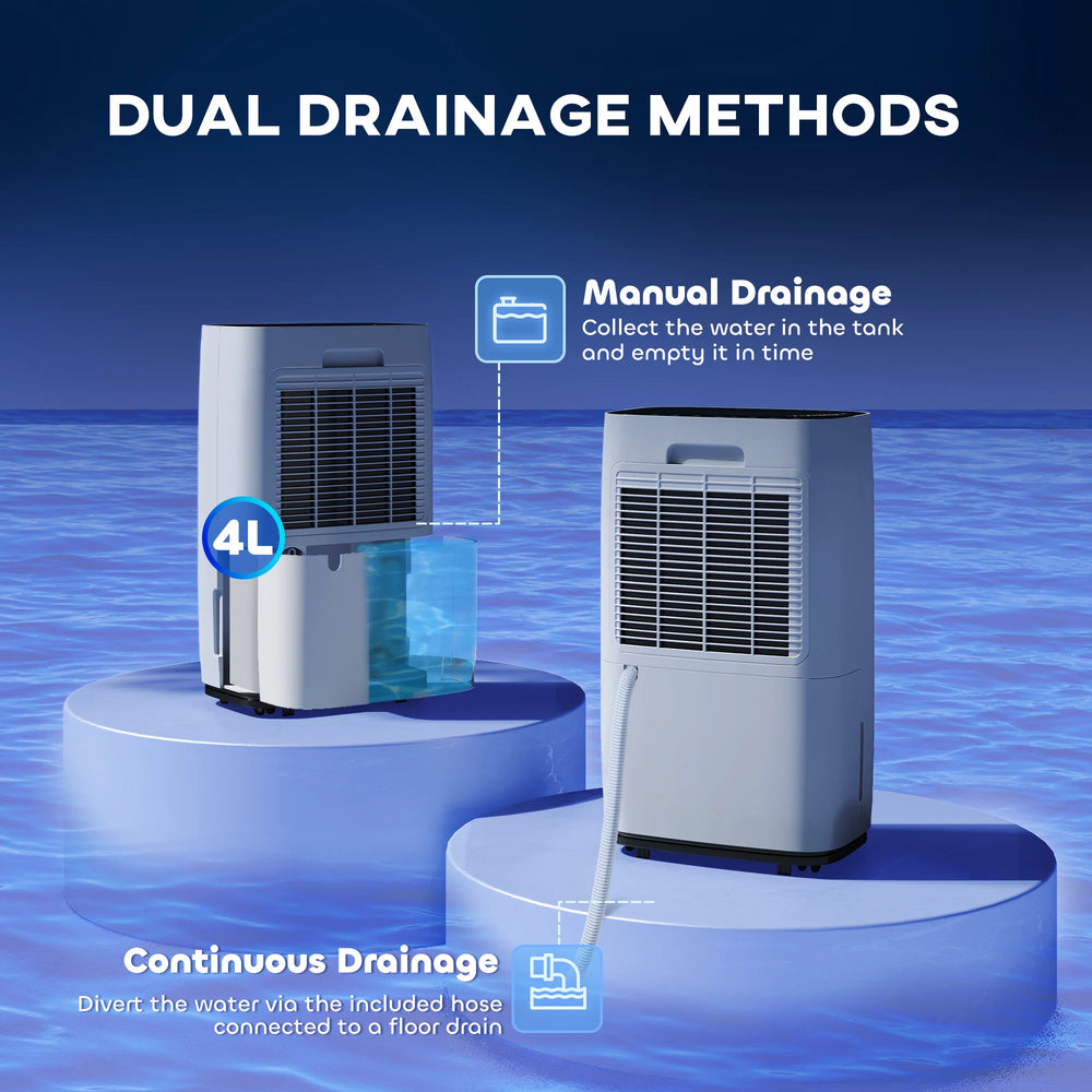 - Compact Size, 4L Tank: Small to fit in lots of places. Suitable for 16-20m2 sized areas. Removes up to 20L per day in a 30C room with 80% relative humidity.