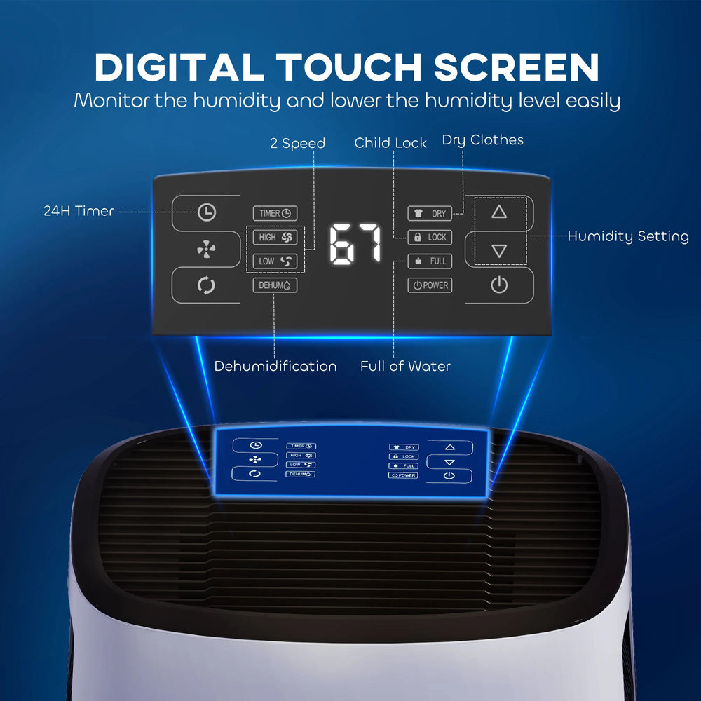 - Adjustable fan and humidity: Set this electric dehumidifier to how you want it to run - tailored comfort. LED display to change the settings easily. Child lock for safety.