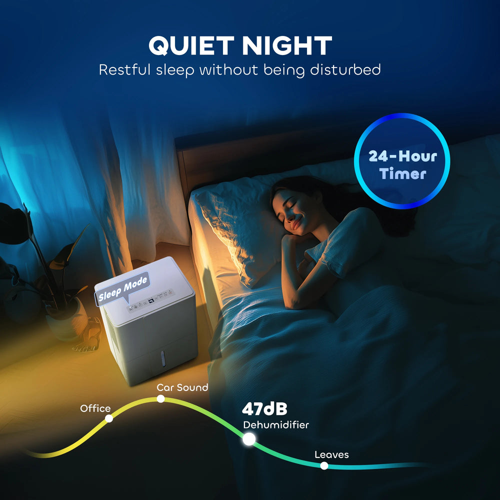 - Smart functionality: Features auto defrost function, memory function, sleep function (quiet and LED display off), easy-to-read LED display, children lock, swivel wheels and dual side handles, making this dehumidifier for bedroom user-friendly.