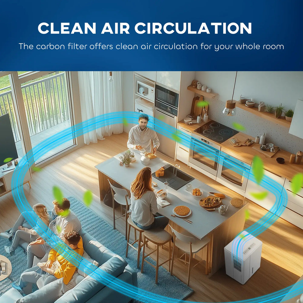 - Dual layer air filter: Formed of an activated carbon filter and pre-filterensures home dehumidifier keeps the air in your space clean.