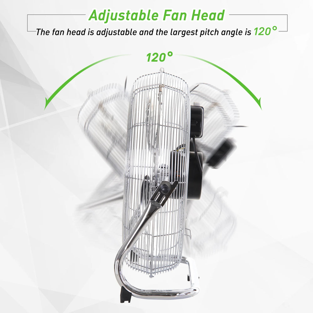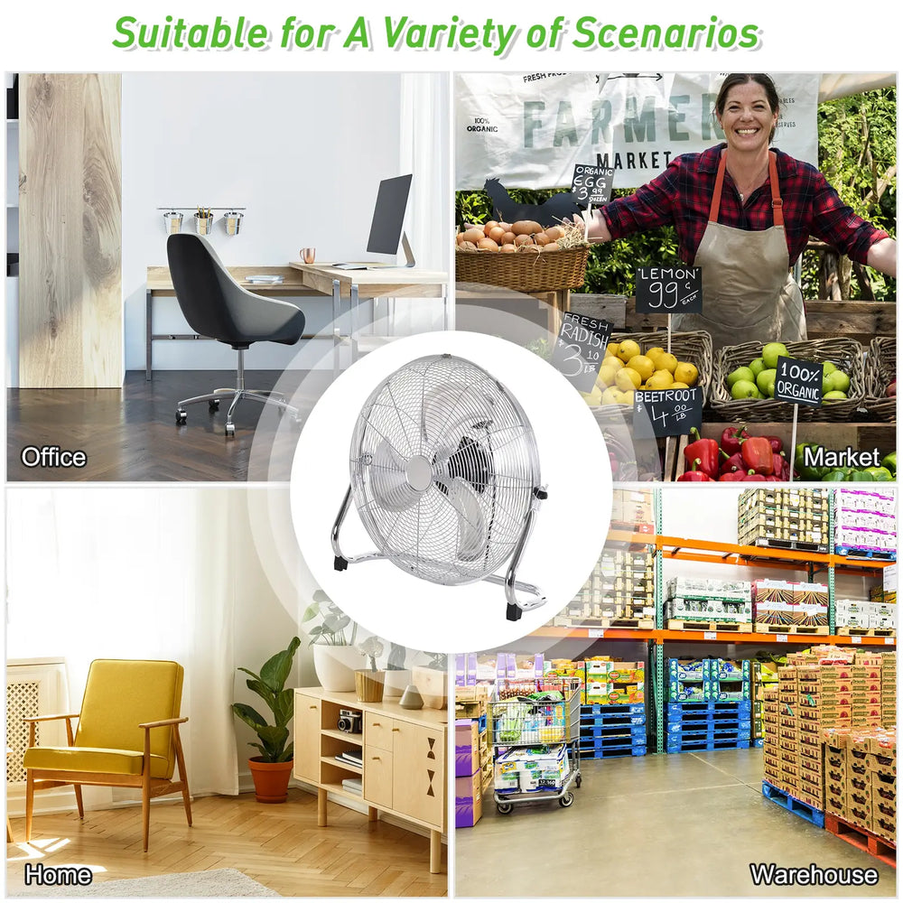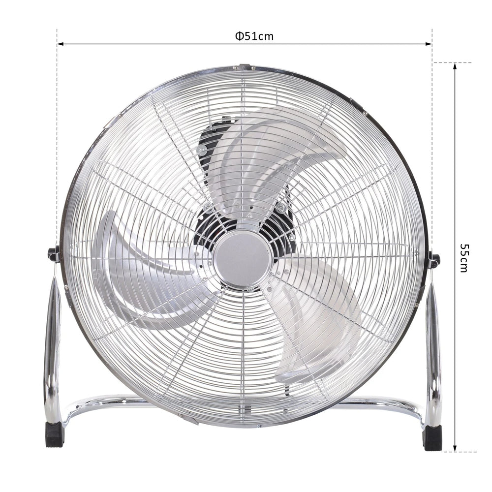 HOMCOM 20" Chrome Metal Floor Fan with Tilting, High Velocity, 3 Speed, Portable Gym Fan for Home Office, Silver