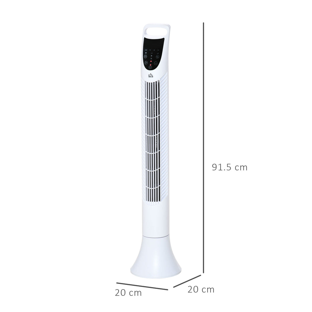 HOMCOM 36'' Freestanding Tower Fan, 3 Speed 3 Mode, 7.5h Timer, 70 Degree Oscillation, LED Panel, 5M Remote Controller, White