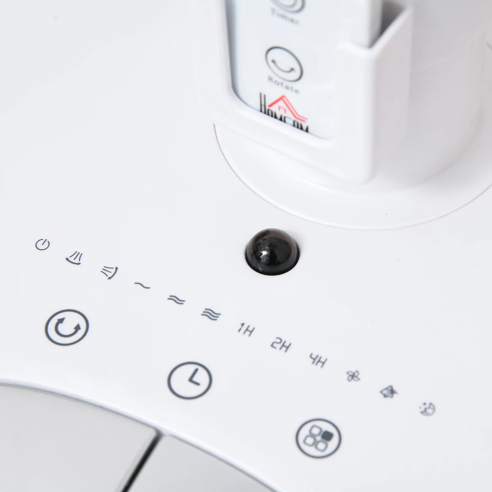 Stay comfortably cool during those hot summer afternoons and nights with this fan for bedroom from HOMCOM. It is easy to use and suitable for home and office use. The electric fan features three variable speed settings and modes for personalised comfort. The 70 oscillation, 90 vertical tilt and 360 rotation allow you to direct air to a specific point. A maximum seven hour timer is great for night bedroom use. It's finished with a carry handle and also comes with a remote.