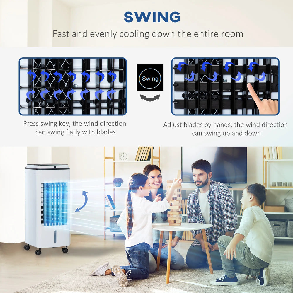 HOMCOM 3-in-1 Evaporative Air Cooler with 4L Water Tank, Portable Fan Cooler with Automatic Oscillation, Timer, Remote, White