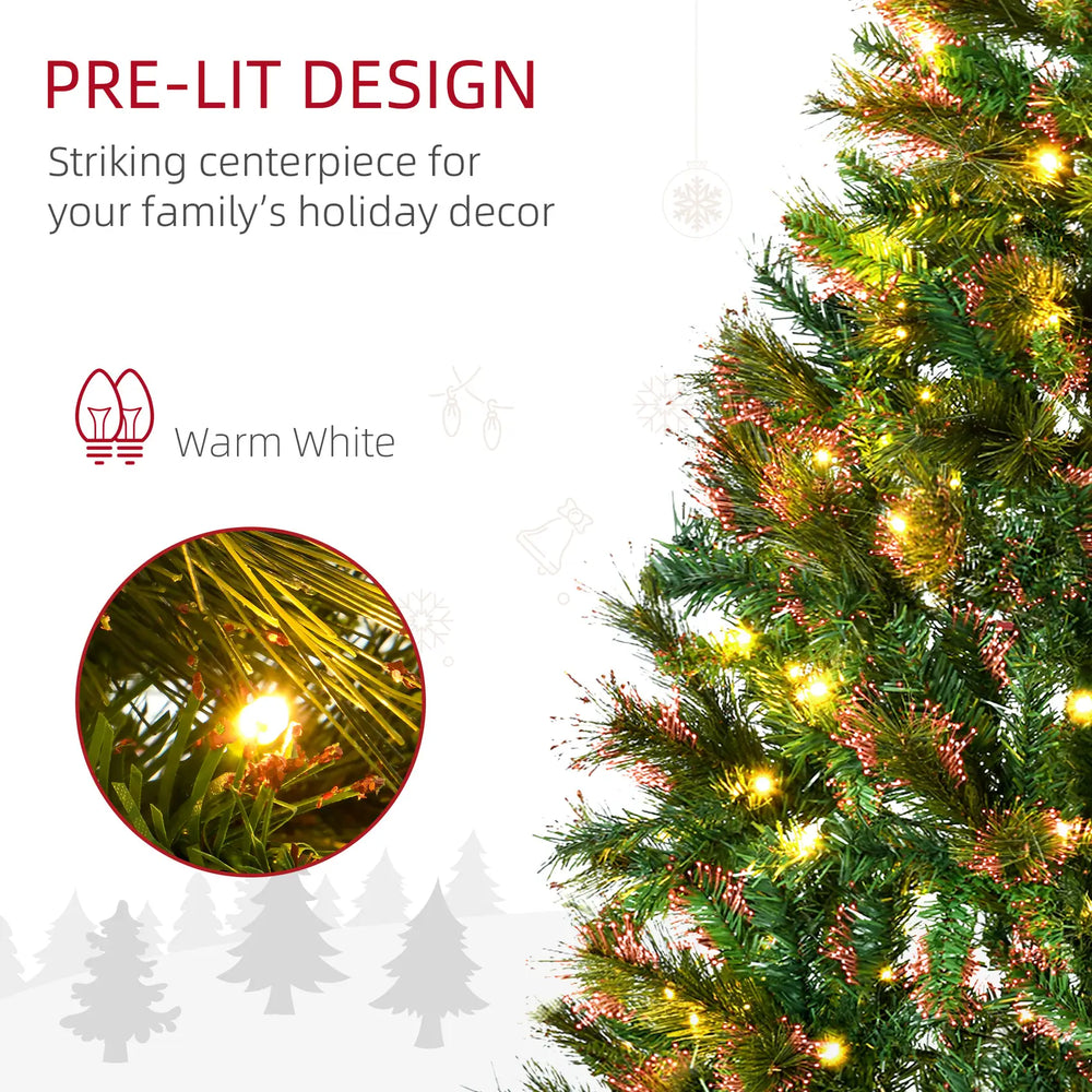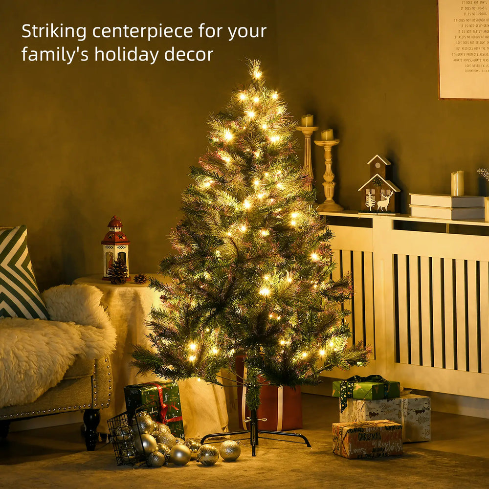 HOMCOM 1.5m 5ft Pre-Lit Christmas Tree Artificial Spruce Xmas Tree Warm White LED Holiday Dcor with Metal Stand