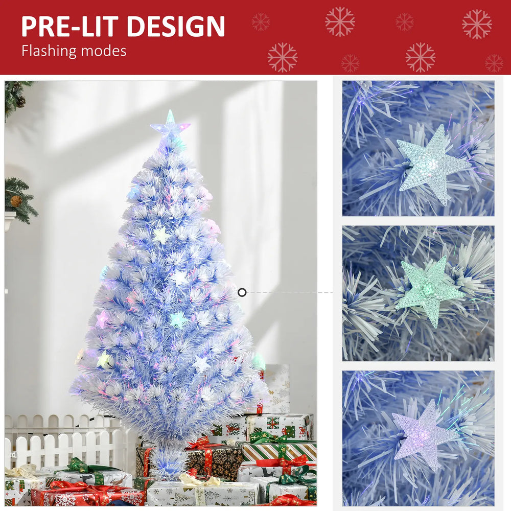 HOMCOM 4FT Artificial Fibre Optic Christmas Tree Seasonal Decoration w/ LED Lights Pre-Lit Easy Store White Blue