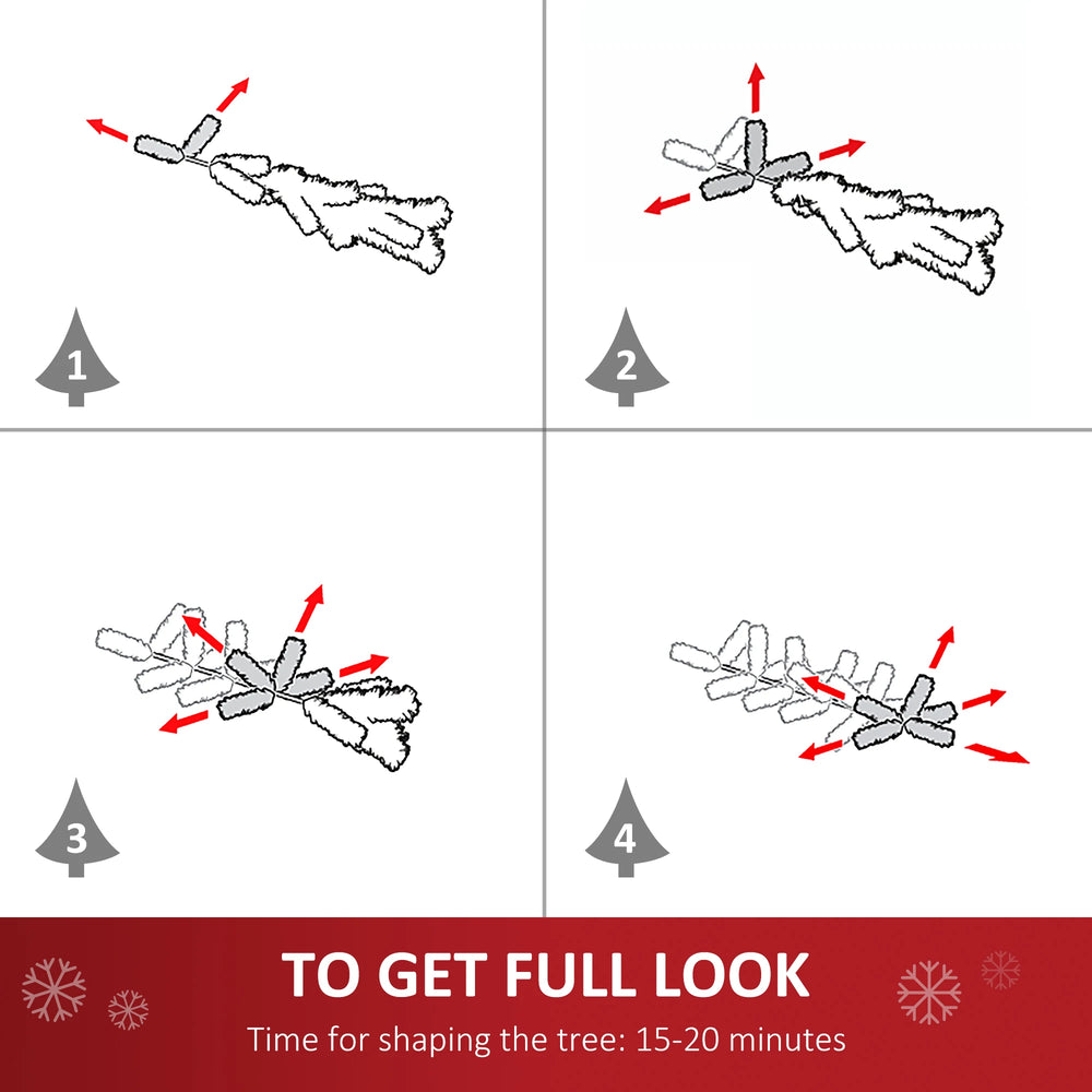 Bring light and beauty to your home during the most special season with this artificial Christmas tree from HOMCOM. Made using a durable and steady metal base that keeps the tree perfectly upright, it is crafted into a tall design with white and blue life-like branch tips for a beautiful focal point to any room. With a tall and rigid upright branch on the top for placing your angel, this tree is finished with sparkling LED lights all over. Multi-coloured helps create a welcoming and beautiful atmosphere, giving you lots of options to suit your mood and Christmas home furnishings. Perfect for injecting some Christmas joy and spirit into you home this season.