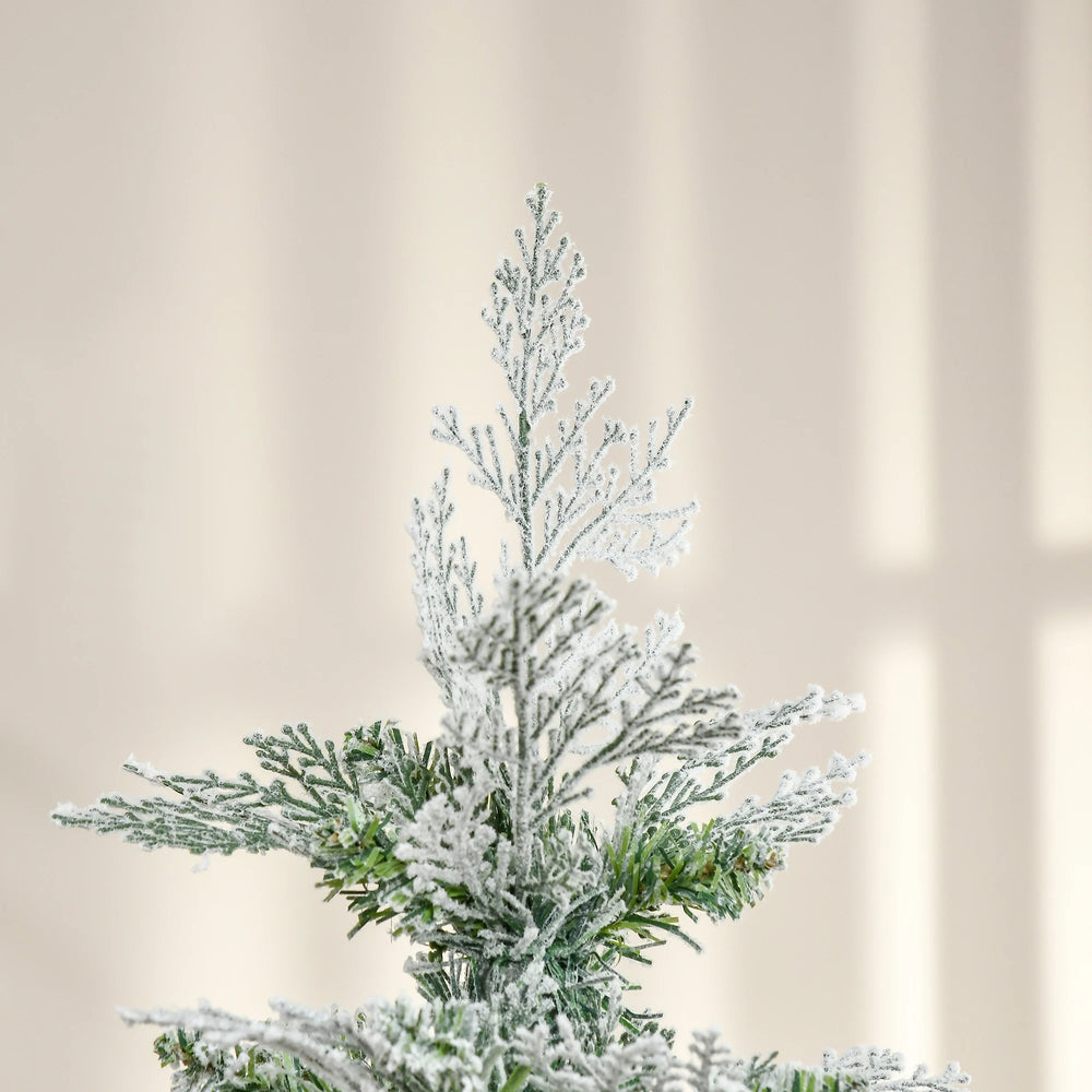 HOMCOM 6 Ft Pencil Snow Flocked Artificial Christmas Tree with Realistic Cypress Branches, Auto Open, Green
