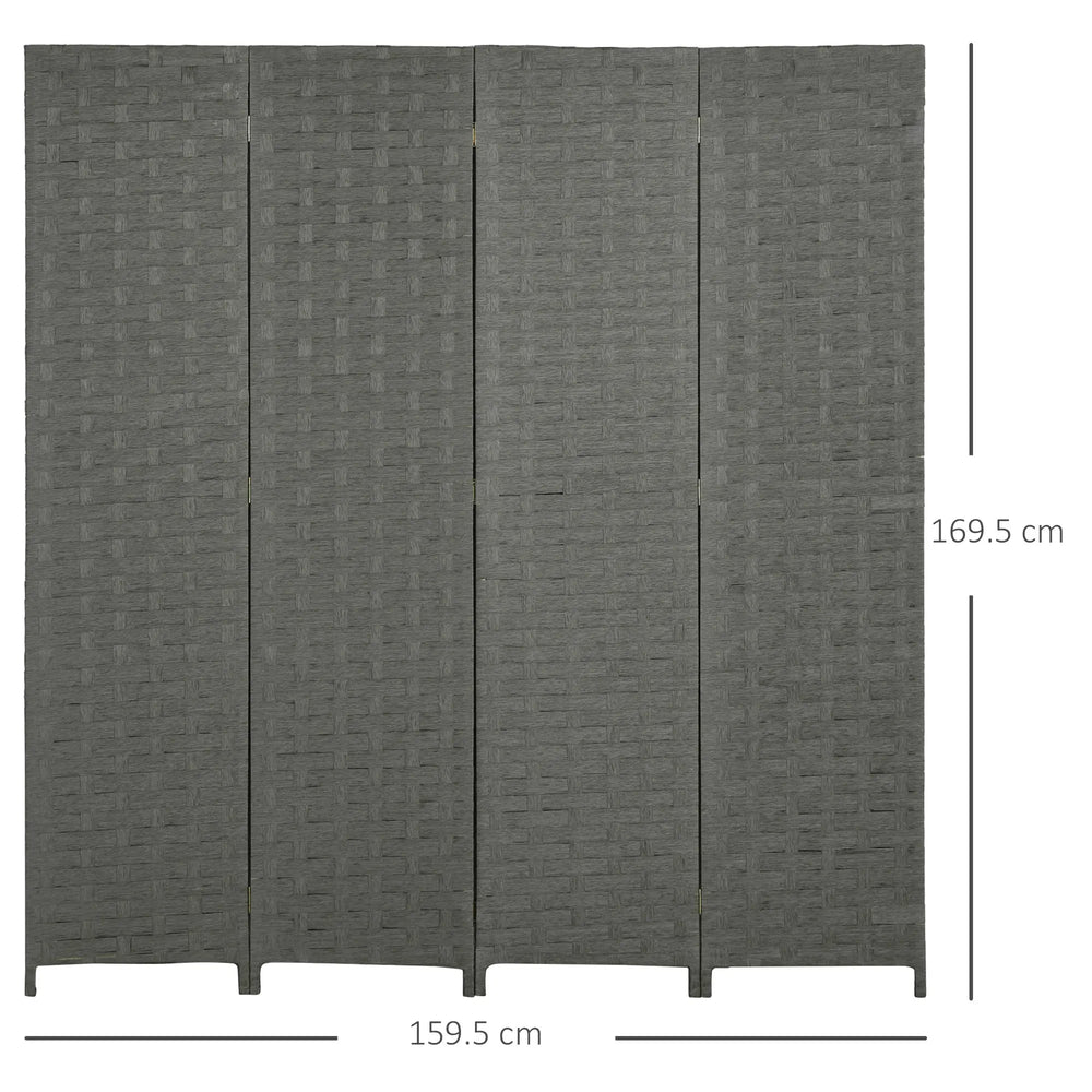 HOMCOM 4-Panel Room Dividers, Wave Fibre Freestanding Folding Privacy Screen Panels, Partition Wall Divider for Indoor Bedroom Office, 170 cm, Grey