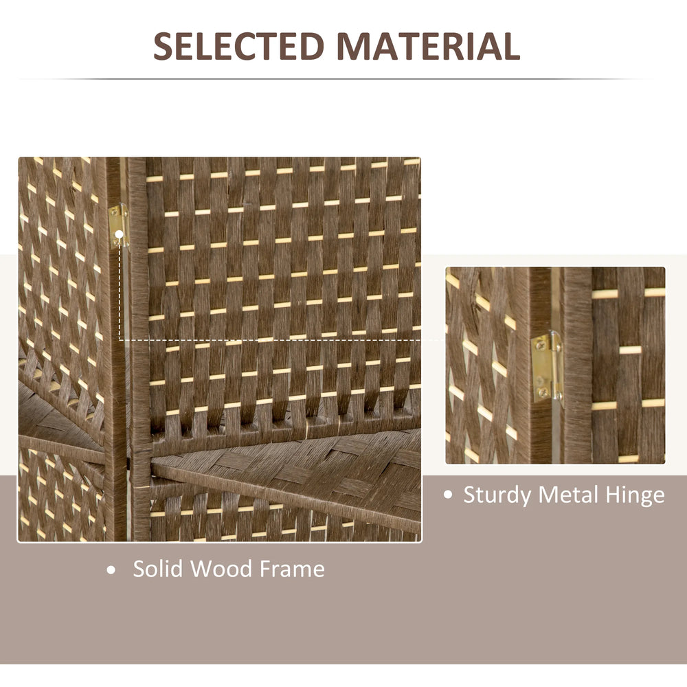 HOMCOM 4-Panel Room Dividers with Shelves, Wave Fibre Freestanding Folding Privacy Screen Panels, Partition Wall Divider for Indoor Bedroom Office, 180 cm, Brown