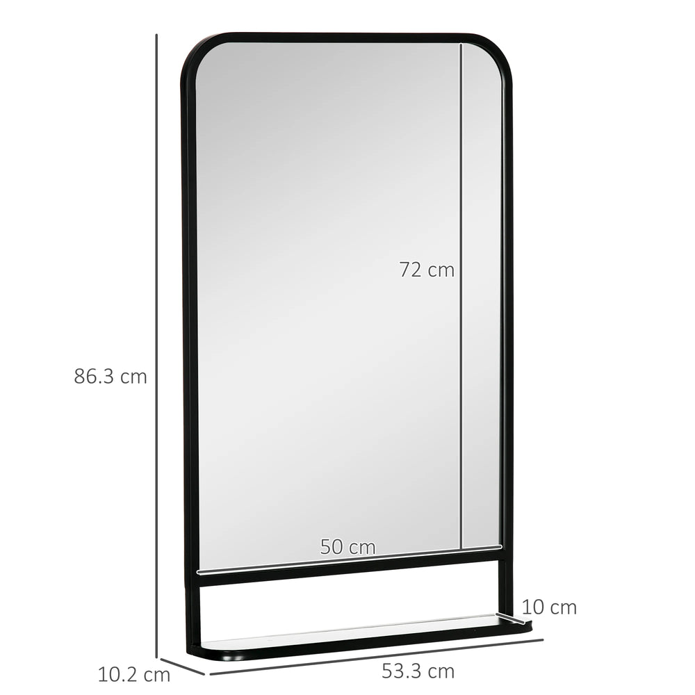 HOMCOM Modern Square Wall Mirror with Storage Shelf, 86 x 53 Mirrors for Living Room, Bedroom, Black