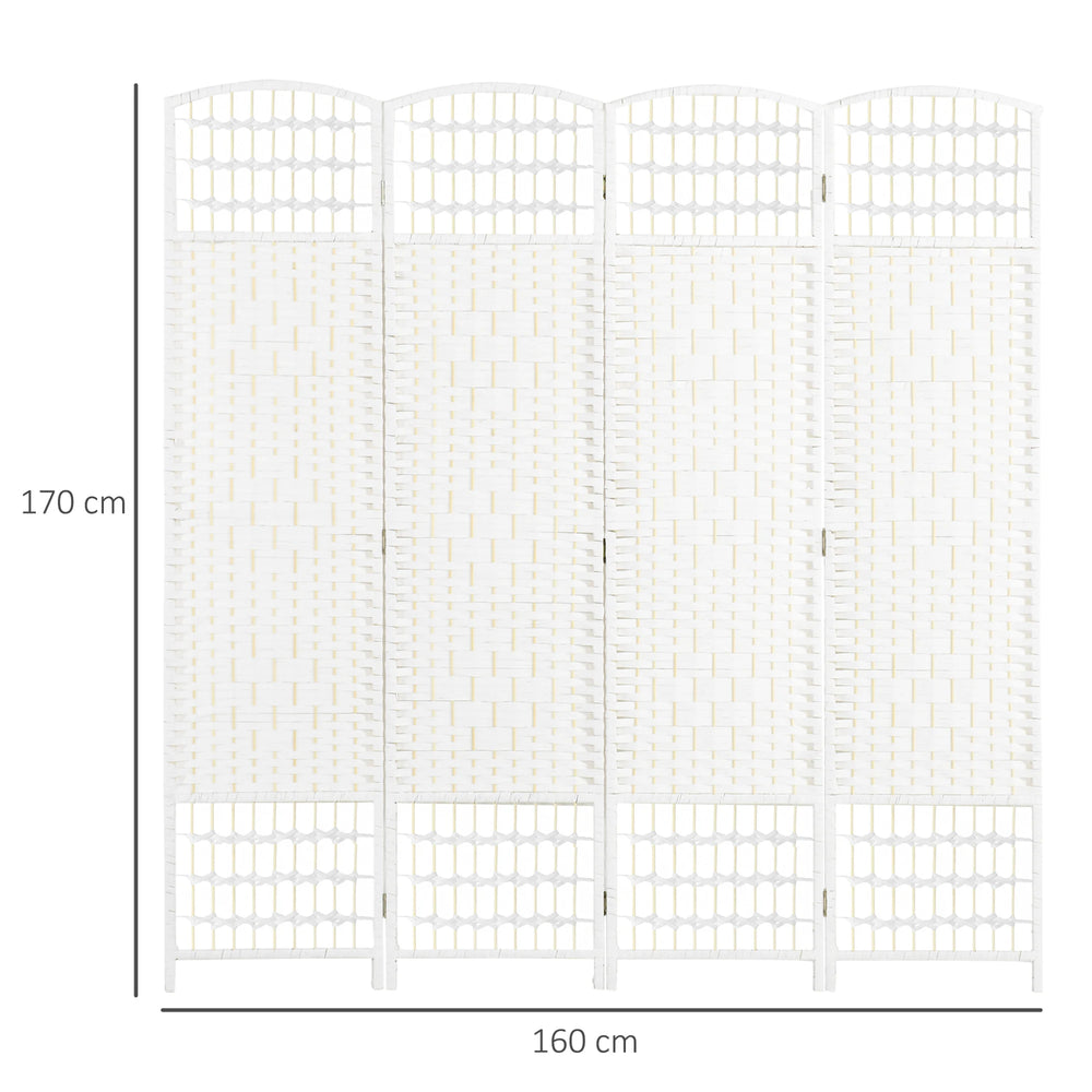 HOMCOM 4 Panel Folding Room Divider, Privacy Screen, Freestanding Paravent Partition Separator for Living Room, Bedroom and Office, 160 x 170cm, White