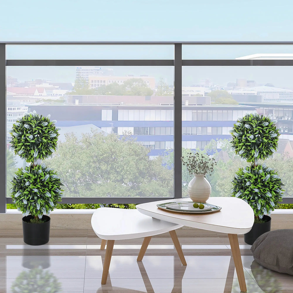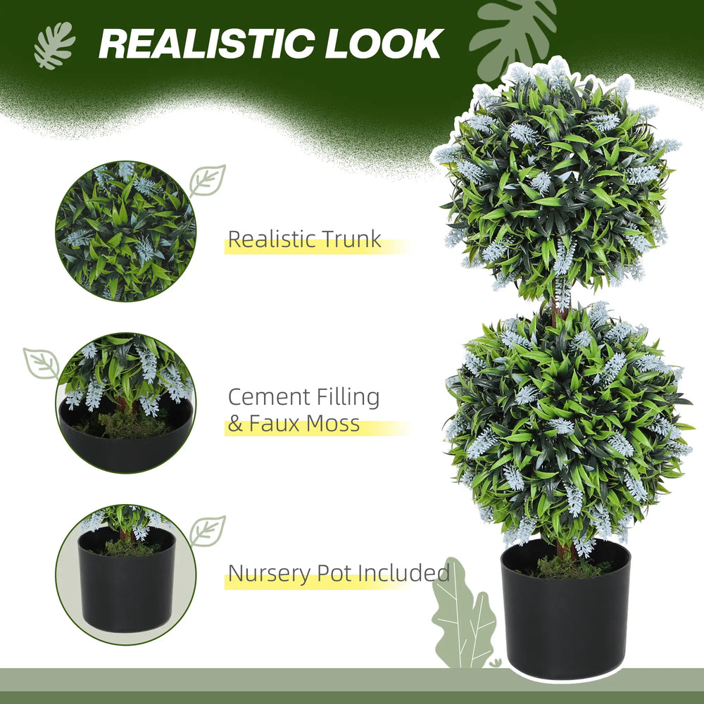 HOMCOM Set of 2 Decorative Artificial Plants Ball Trees with Lavender Flowers in Pot Fake Plants for Home Indoor Outdoor Decor, 70cm, Blue