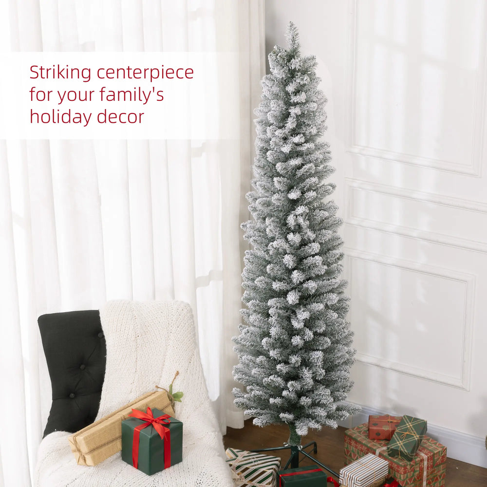 HOMCOM 6ft Artificial Snowy Pencil Christmas Tree - White