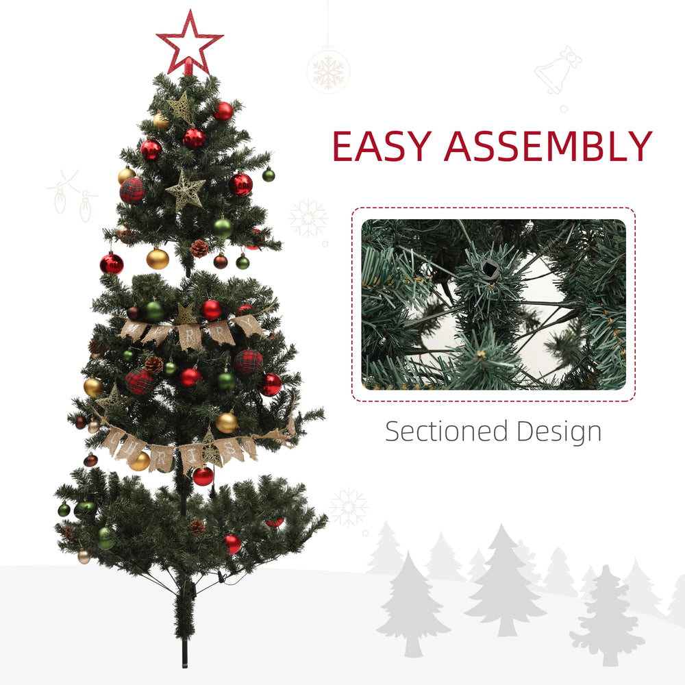HOMCOM 6ft Pre-Lit Xmas Tree with Decorations, Green, Red and Warm White