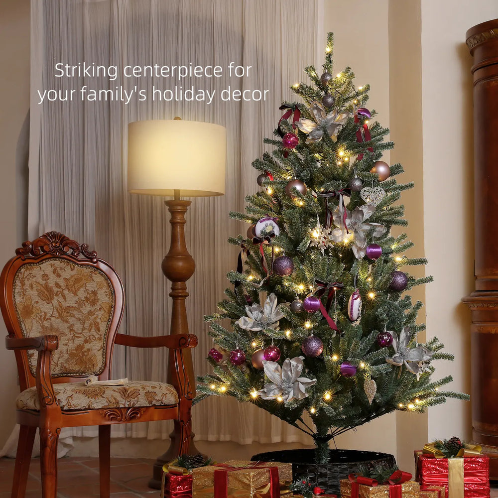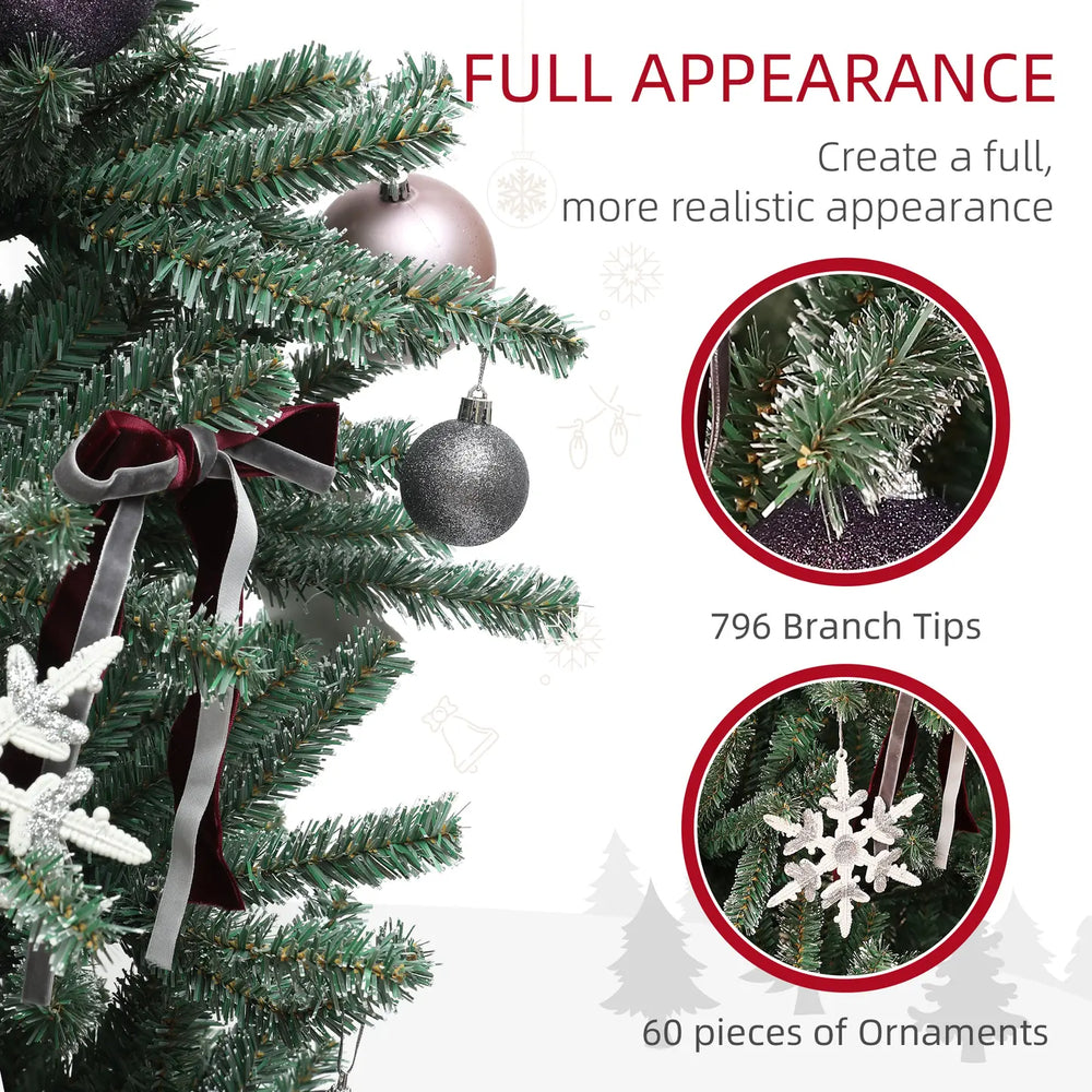 HOMCOM 6ft Artificial Christmas Tree, with Purple Decorations and Lights