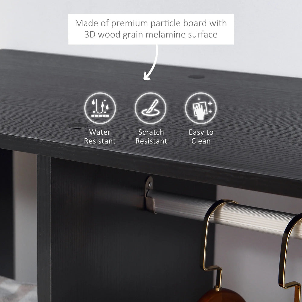 HOMCOM Open Wardrobe on Wheels, Bedroom Wardrobe with Clothes Hanging Rail, 3 Storage Shelves, Mobile Garment Rack for Cloakroom, Hallway, Black