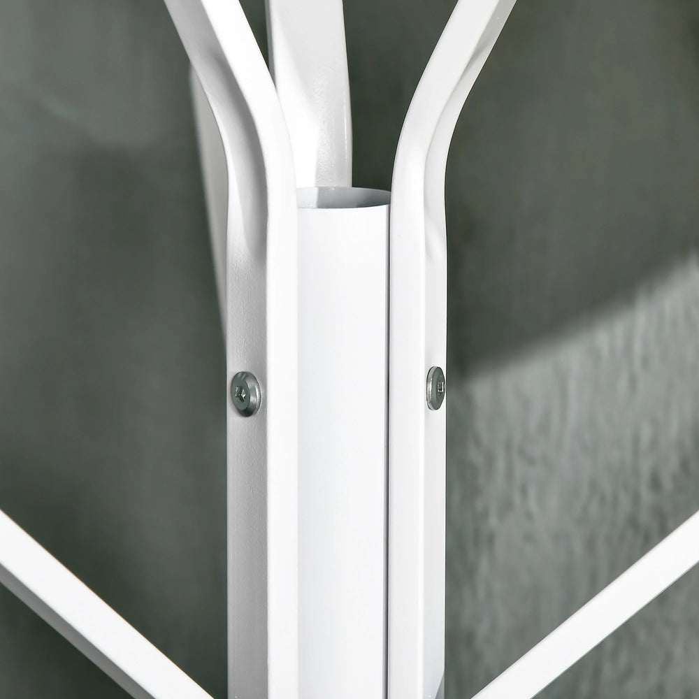 HOMCOM Freestanding Metal Coat Rack Stand 9 Hooks Clothes Tree with 1 Shelf Hat Display Hall Tree Hanger Bag Umbrella Hanging Organiser White