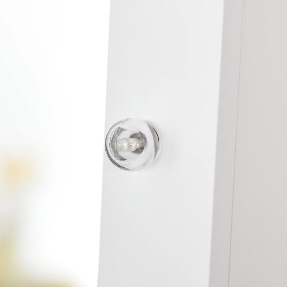 HOMCOM Free Standing LED Mirrored Jewelry Cabinet Armoire Floor Organiser W/ 3 Angle Adjustable For Rings Earrings Bracelets Cosmetics Warm White