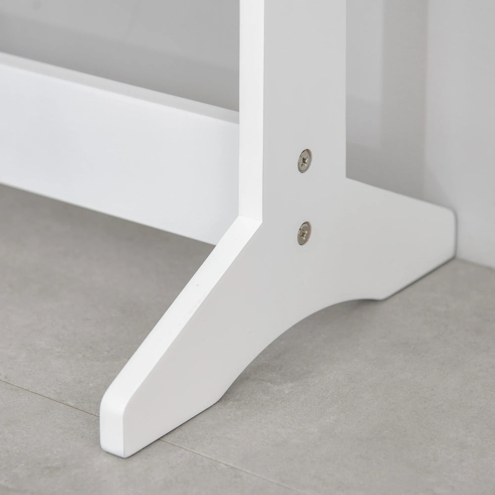 This floor standing jewellery cabinet from HOMCOM is perfect for keeping all your make-up, jewellery and other accessories together in a place. On the outside is a full-length mirror with battery powered LED lights that create a soft and flattering glow, and on the inside is a fully-lined interior that can house up to 32 pairs of earrings, 70 rings, 12 hooks and three shelves. Made from sturdy MDF board, the mirror can be adjusted to three different levels to suit your preferences. Clean, stylish and contemporary, this organiser is a beautiful addition to any style surrounding.