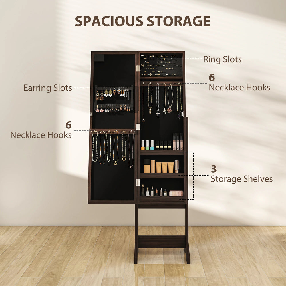 HOMCOM Freestanding Mirrored Jewellery Storage Cabinet - Dark Brown
