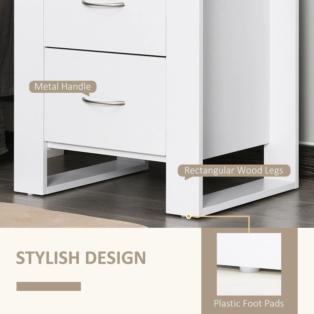 HOMCOM Bedside Table with 2 Drawers, Nightstand with Handles and Elevated Base, Side Table for Bedroom, Living Room, White is backordered and will ship as soon as it is back in stock.