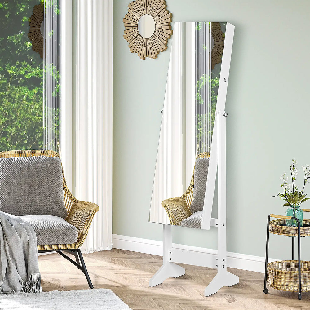 HOMCOM Jewelry Cabinet Standing Mirror Full Length Makeup Lockable Armoire Storage Organizer White