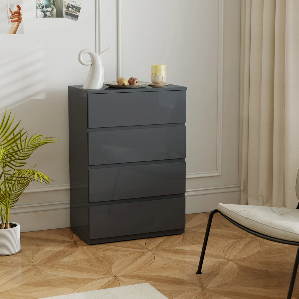 HOMCOM High Gloss Chest of Drawers, 4-Drawer Storage Cabinets, Modern Dresser for Bedroom, Grey