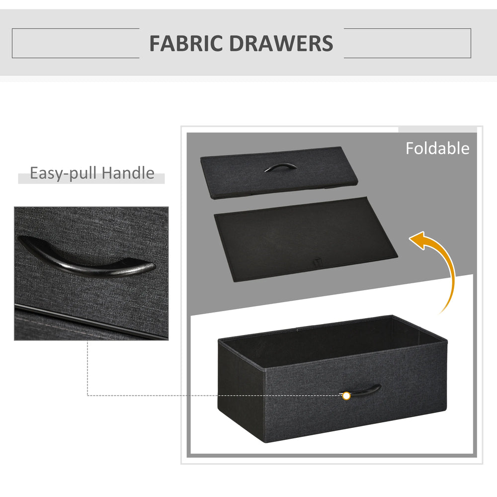Opt for a soft approach to home storage - go for this fabric drawer unit from HOMCOM. Comes with two small drawers and a large, with two shelves on top to give you plenty of storage and display room respectively. The frame, made from metal, ensures a sturdy core structure, with adjustable bottom feet to keep the balance at all times. Finished with wood-effect handles on the drawers to open and close them easily.