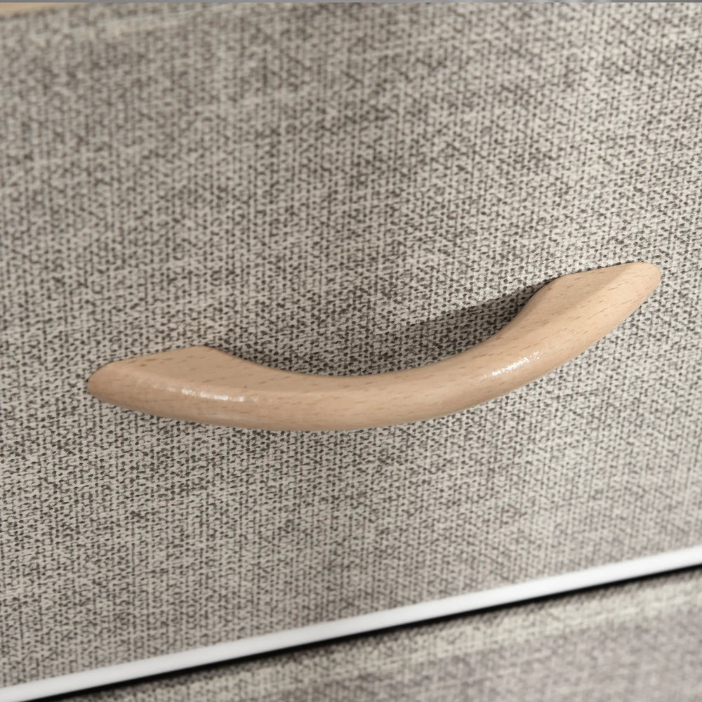 - Linen-feel drawers can be removed and folded. Comes with handle to open and close