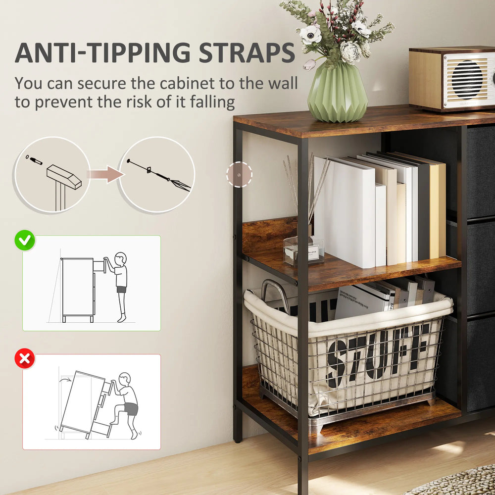 HOMCOM Chest of Drawers Storage Dresser Cabinet Organizer with 3 Fabric Drawers and 2 Display Shelves for Living Room, Bedroom, Hallway, Black