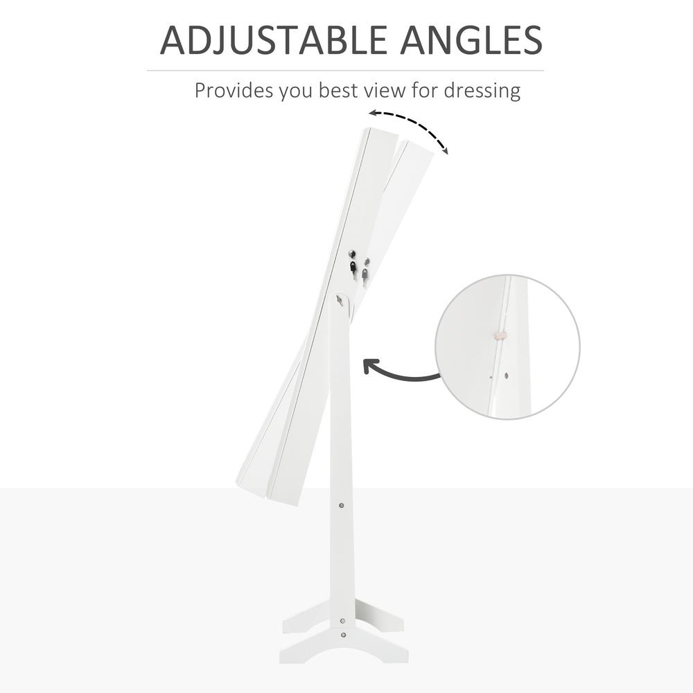HOMCOM Full Length Mirror with Storage, Jewellery Cabinet with Mirror, Adjustable Angle and Stand, Lockable Jewellery Organiser for Bedroom Dressing Room, White