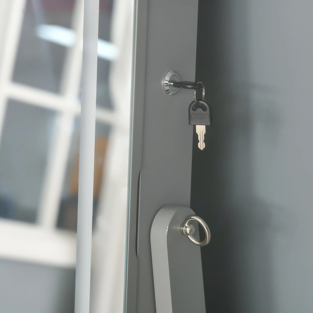 HOMCOM Jewellery Cabinet with LED Light, Lockable Jewellery Organiser with Full-Length Mirror for Bedroom Dressing Room, Grey