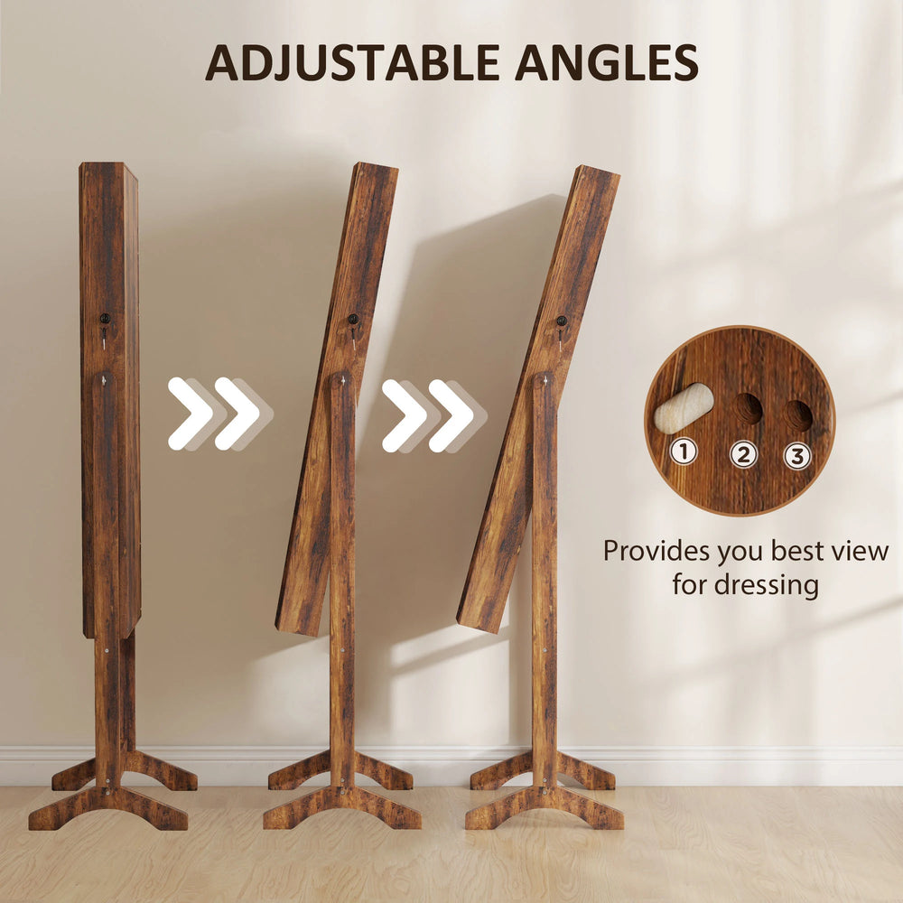 HOMCOM Jewellery Cabinet with LED Light, Lockable Jewellery Organiser with Full-Length Mirror for Bedroom Dressing Room, Rustic Brown