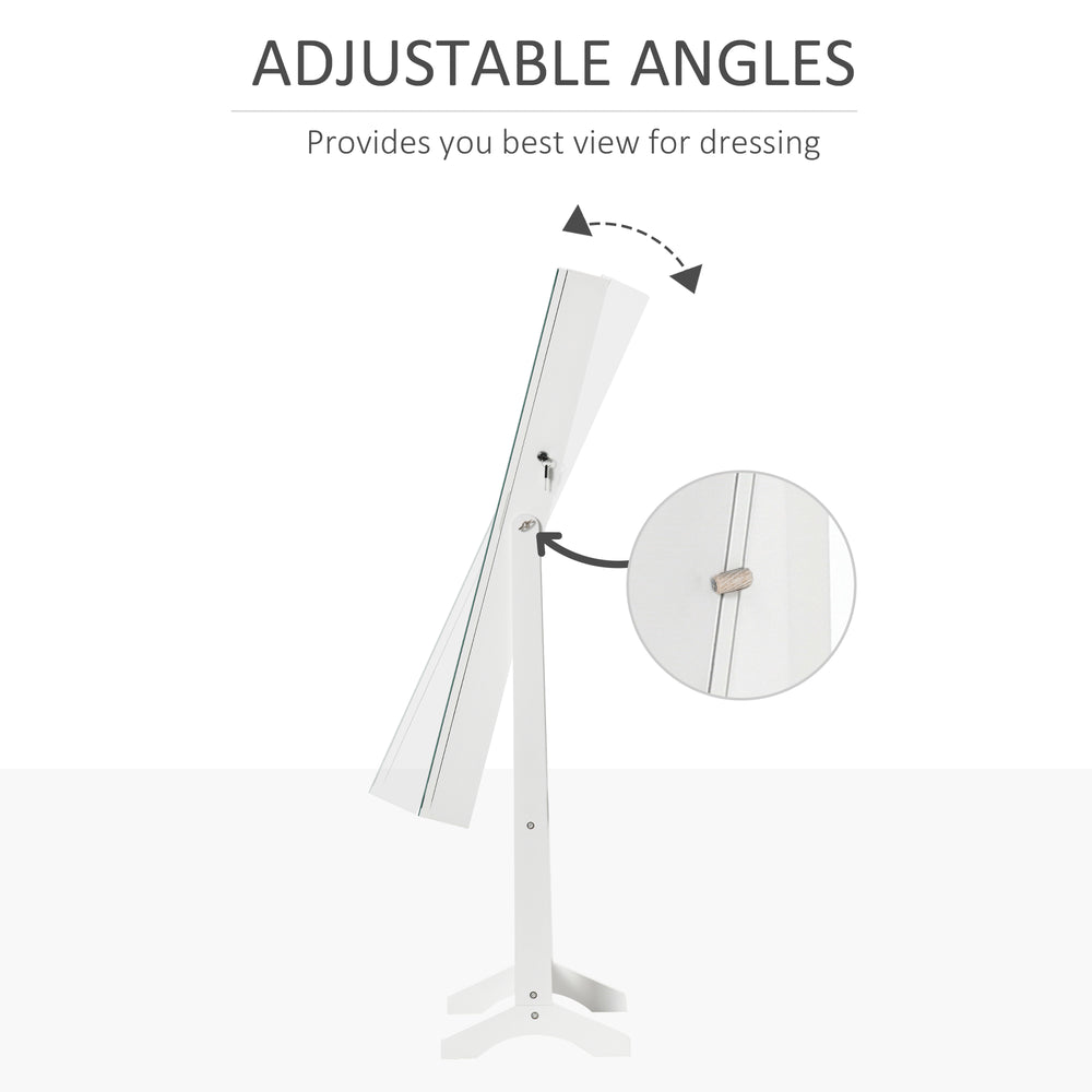 HOMCOM Jewellery Cabinet with LED Light, Lockable Jewellery Organiser with Full-Length Mirror for Bedroom Dressing Room, White