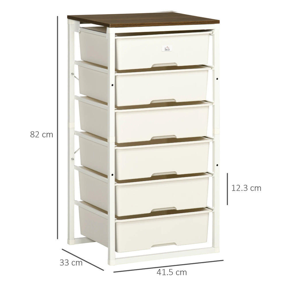Tallboy chest of drawers, from HOMCOM, made to keep whatever space you want tidy nice and organised. A metal frame for strength, with touch plastic drawers - sturdy formations and easy to keep clean. Six drawers offer plenty of space, plus they're easy to open and close. Complete with a top panel for extra holding - and display - room.